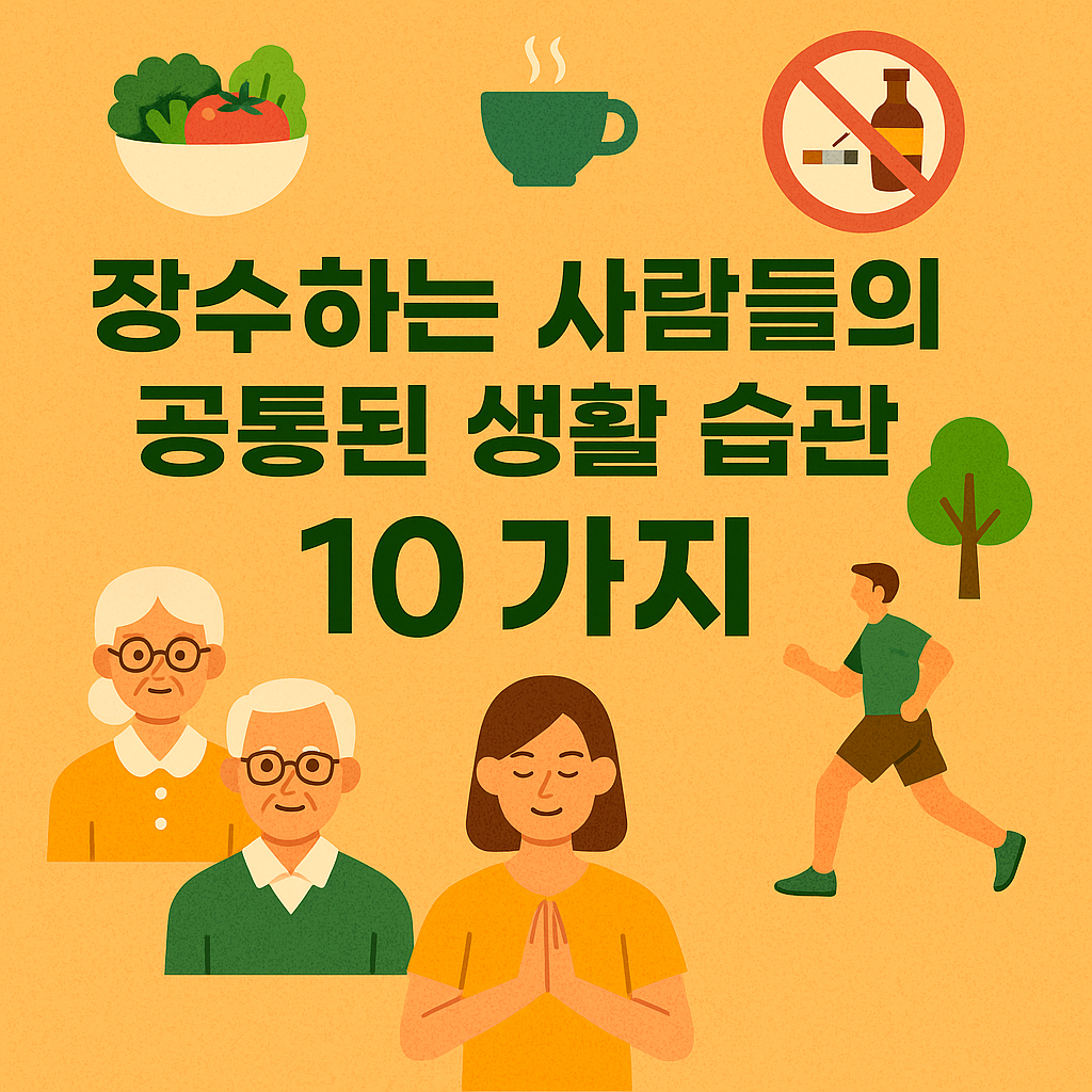 장수는 특별한 비밀이 아니라 일상 속 작은 습관의 결과입니다. 규칙적인 생활, 긍정적인 마음가짐, 균형 잡힌 식사, 꾸준한 활동을 통해 누구나 건강한 노후와 긴 수명을 누릴 수 있습니다. 오늘부터 하나씩 실천해 보며 장수의 길을 만들어 가세요.